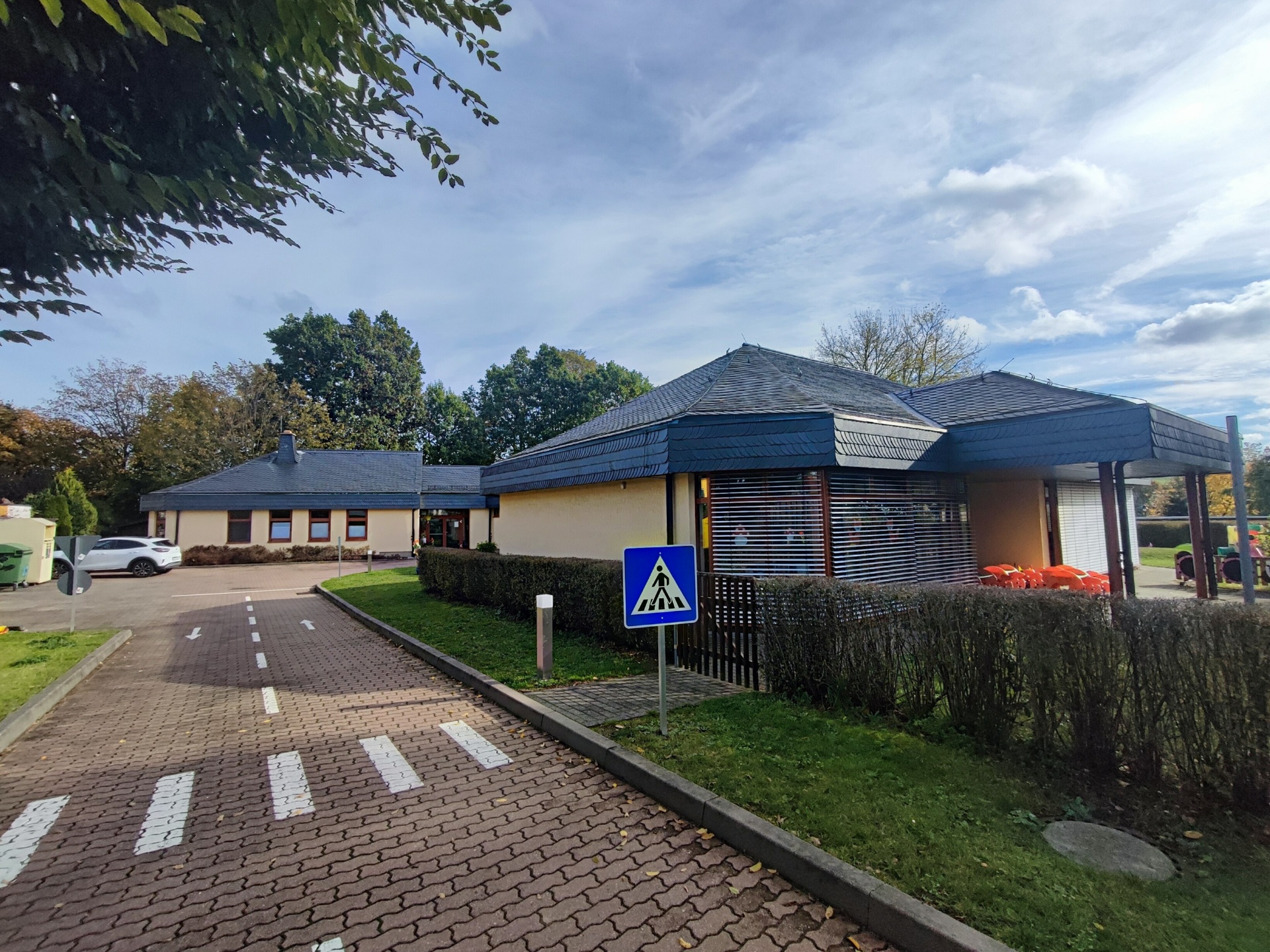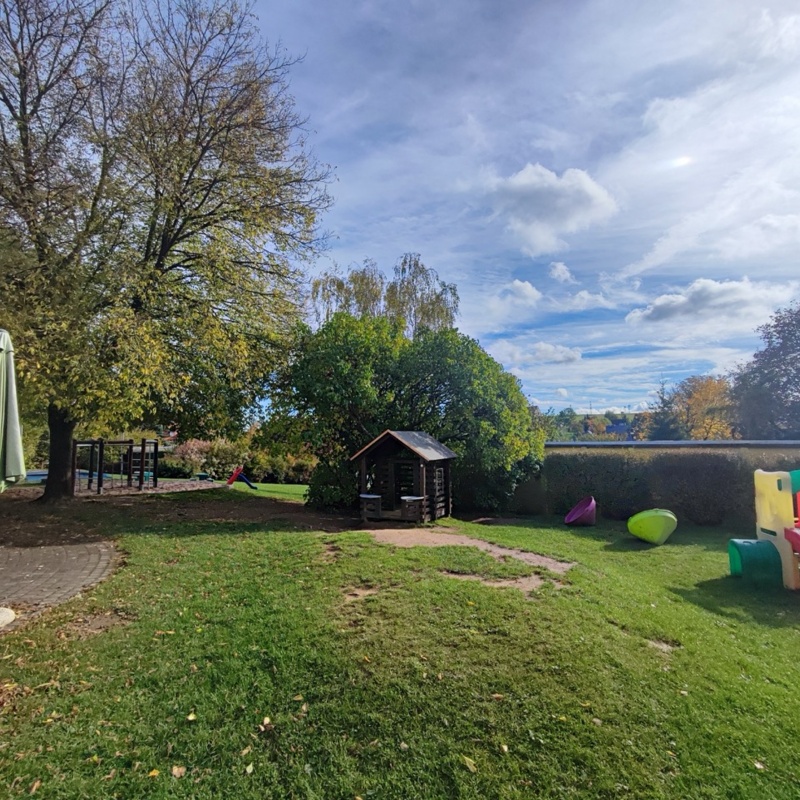 Der 1994 fertig gestellte Neubau verfügt über große freundliche Zimmer mit moderner Ausstattung. Von jedem Gruppenzimmer aus ist es möglich, die überdachten Terrassen und den schönen Garten zu nutzen. Die Einrichtung verfügt über ein Außengelände von fast 2.500 m² mit vielen altersgerechten Spielgeräten.